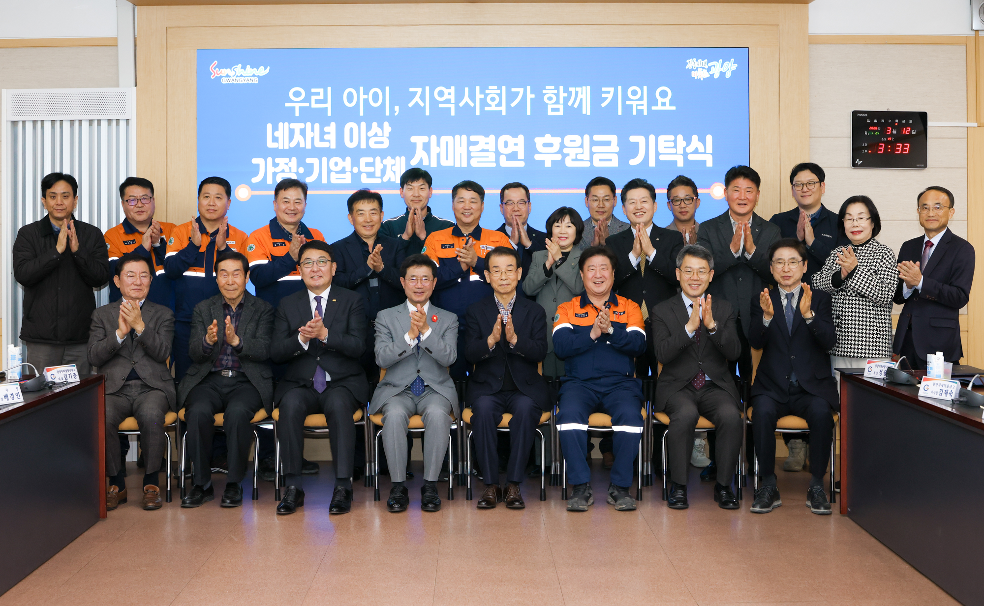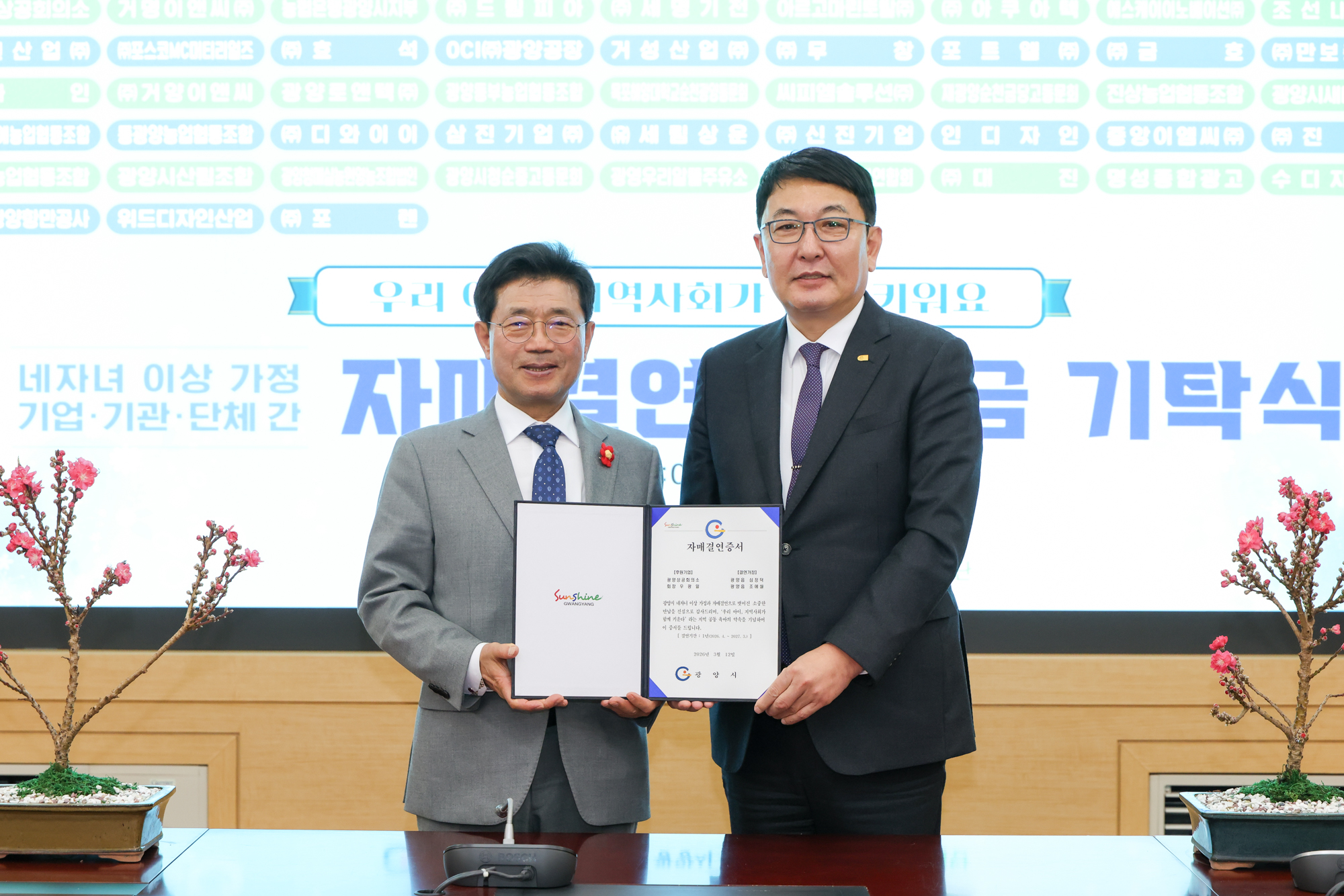 | 제목 | 네자녀 이상 가정 기업·단체 등 자매결연 후원금 기탁식 | ||